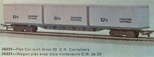 R.6331 60ft Flat Car With Three 20ft Canadian National Containers (Canada) - 1971c